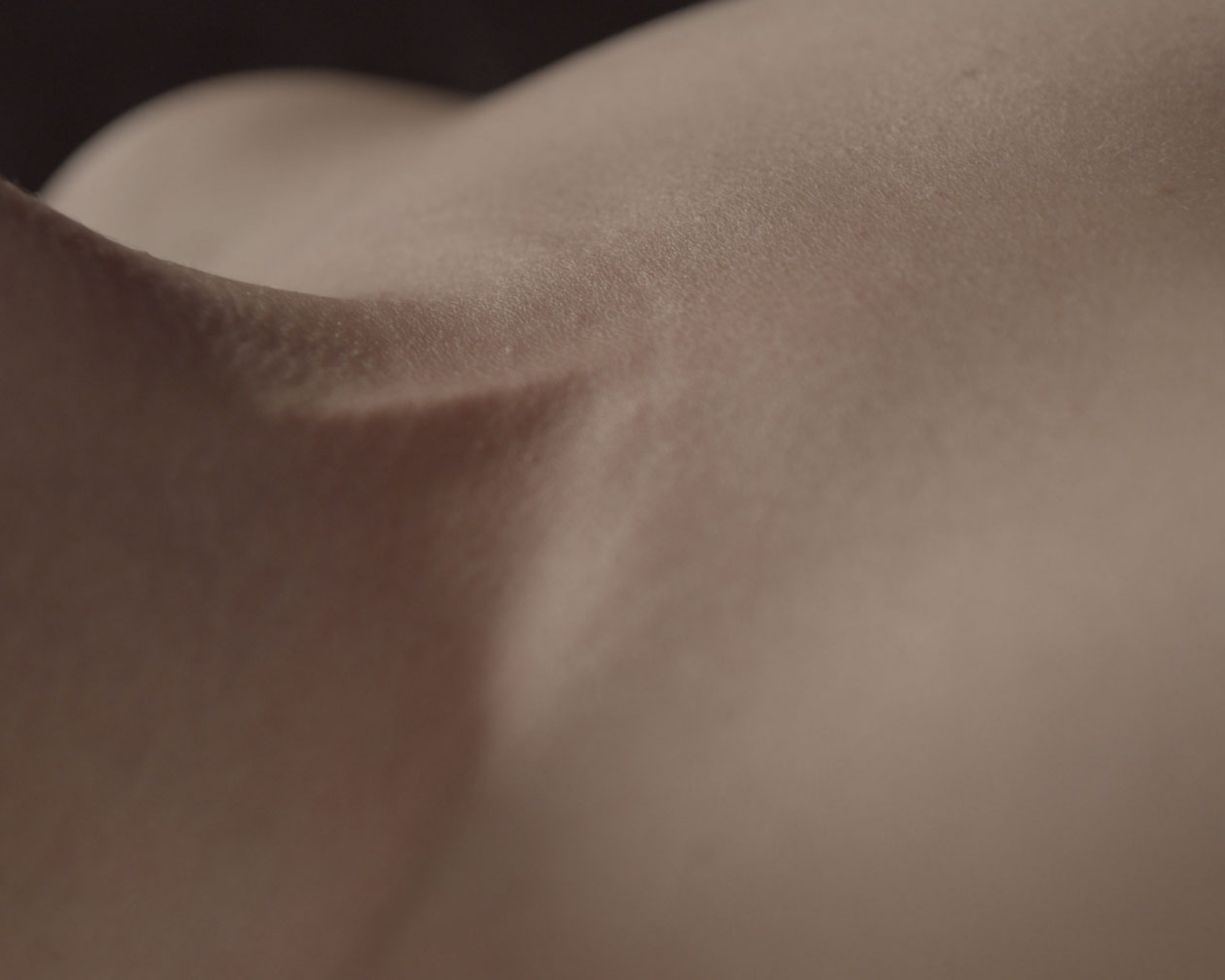 Im Zentrum steht der menschliche Atmungsreflex: die unwillkürliche, überlebensnotwendige Reaktion des Körpers, die kurz vor dem Ersticken einsetzt. Römmelt unterdrückt ihre Atmung willentlich, bis der Reflex sie zwingt, Luft zu holen. Der enge Bildausschnitt reduziert den Körper auf sein physiologisches Wesen – ein autonomer Organismus, der unabhängig vom Bewusstsein handelt und um sein Weiterleben kämpft.