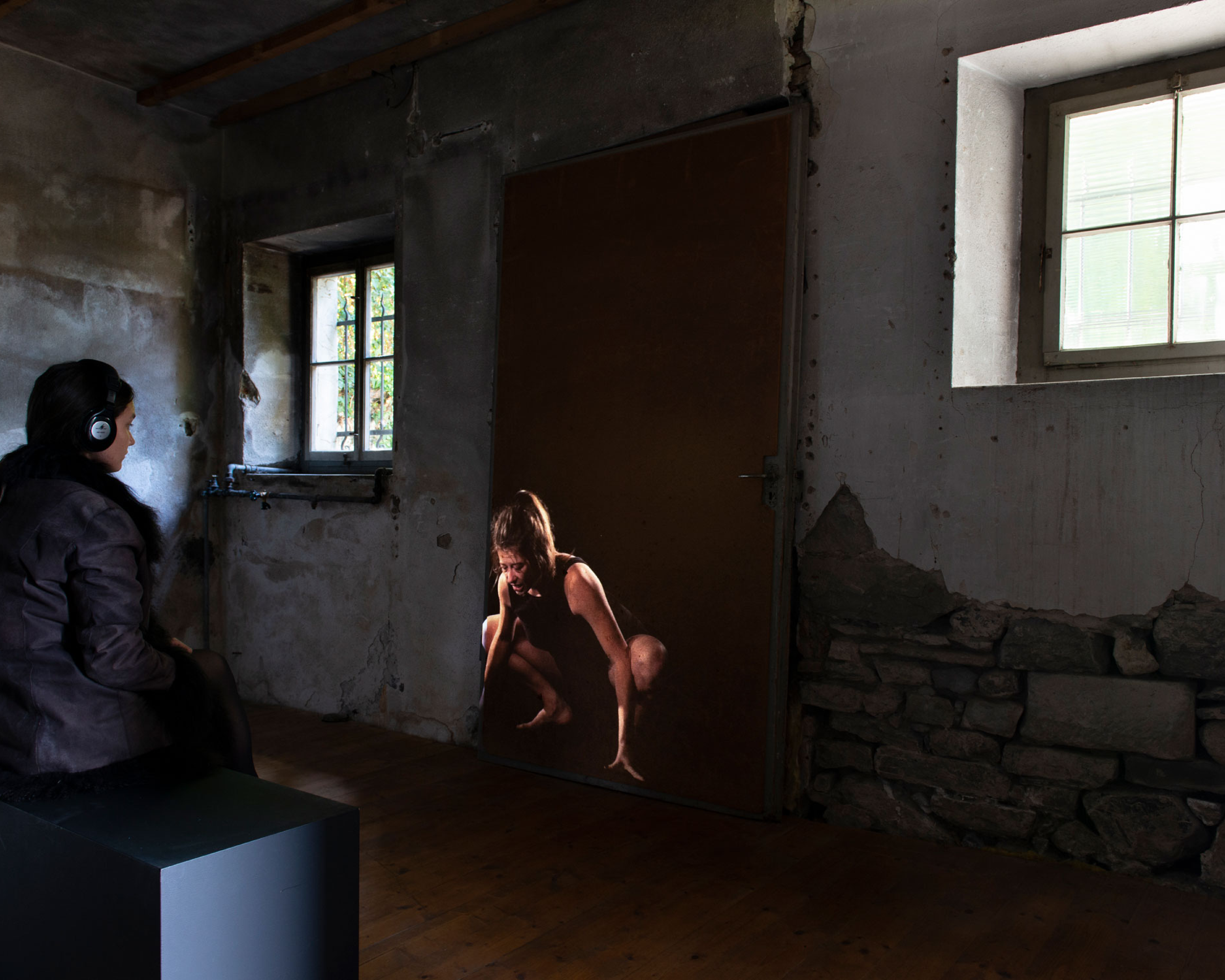 Verstärkt wird dieser Eindruck durch eine akustische Ebene, die über Kopfhörer hörbar ist und das musikalische Wechselspiel von Anspannung und Entspannung der Performerin eindrücklich erfahrbar macht.